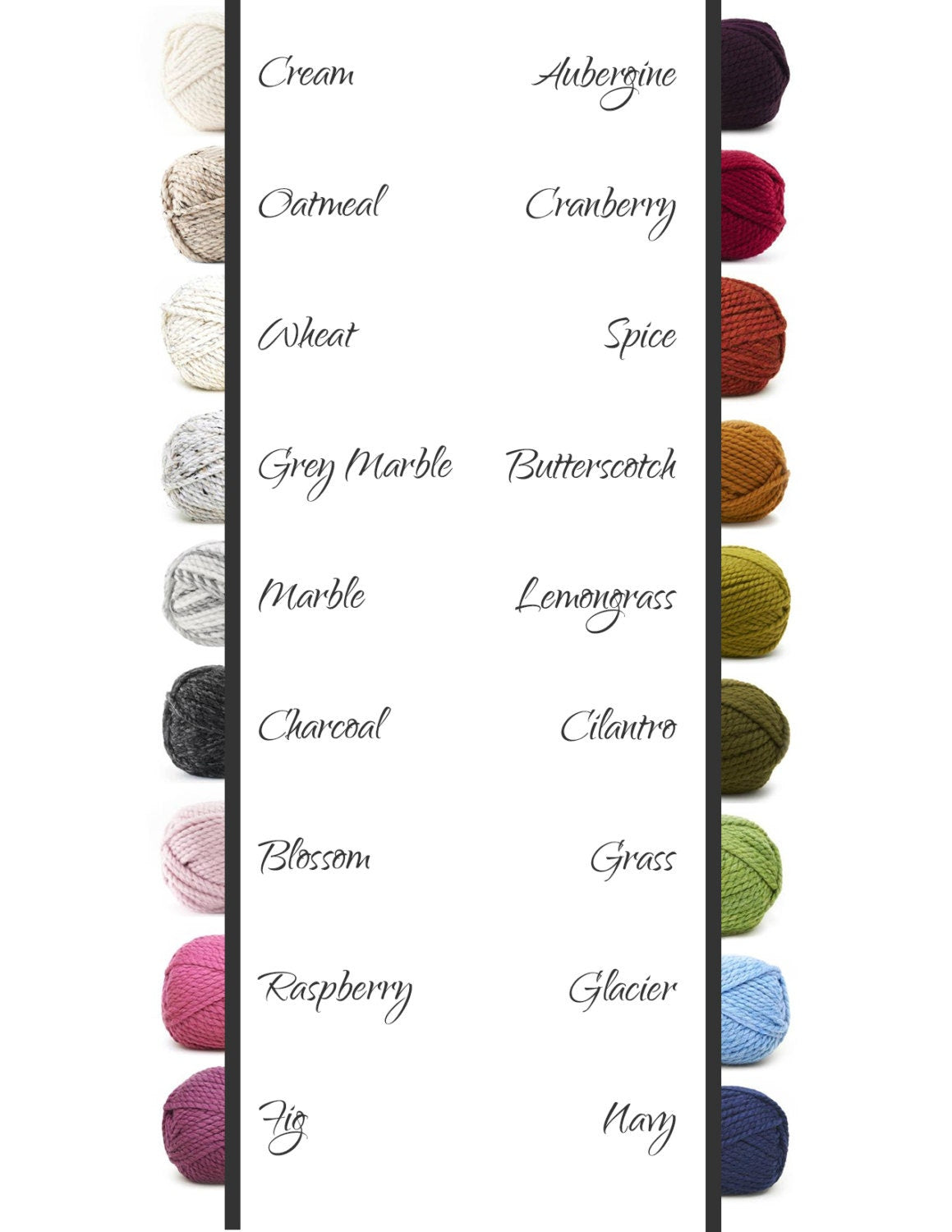 Available in Cream + Oatmeal in ~65" circumference and Cream + Gray Marble in both ~65" and ~75" circumference