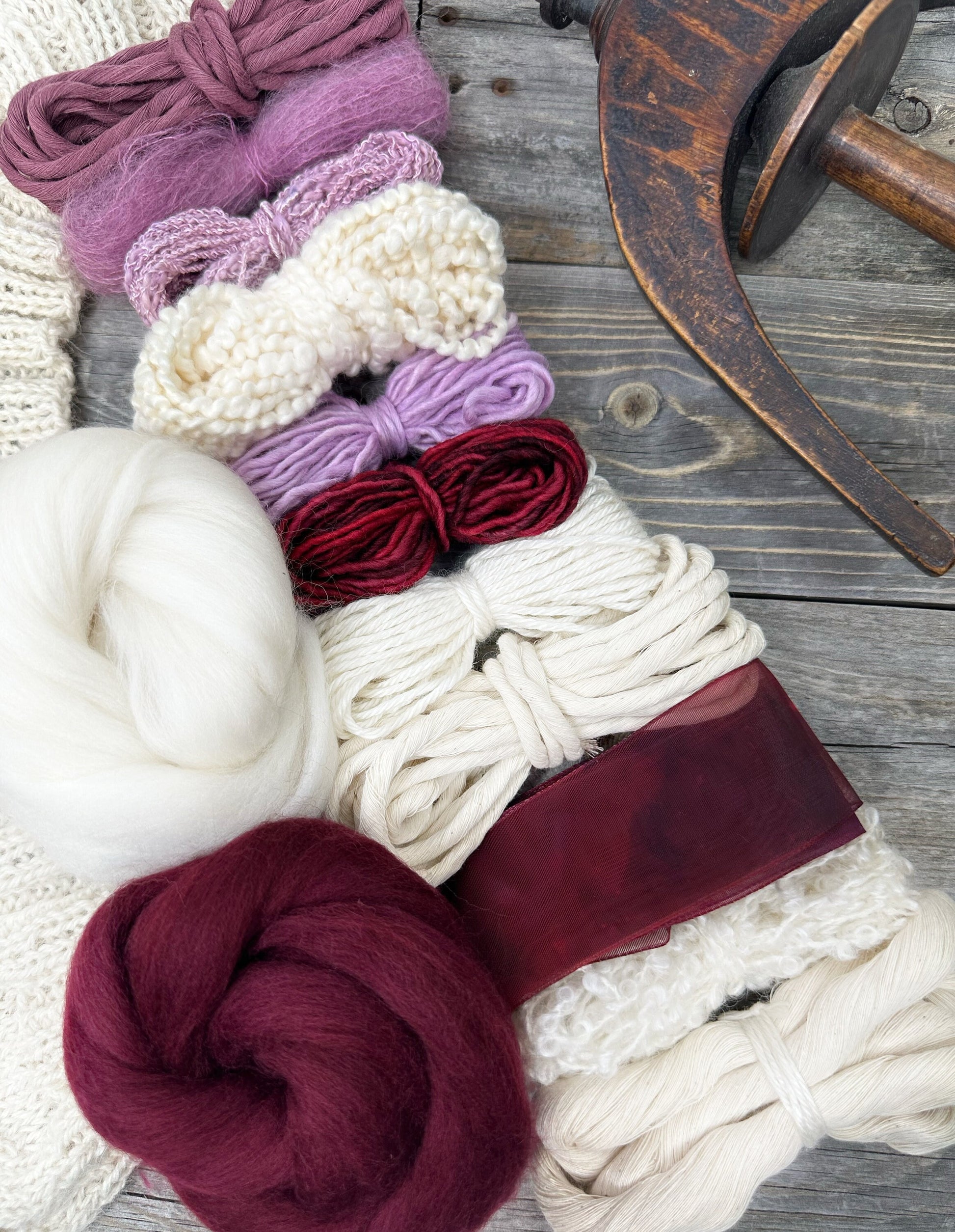 My "Blush" fiber | yarn pack is perfect for small weaving projects.
