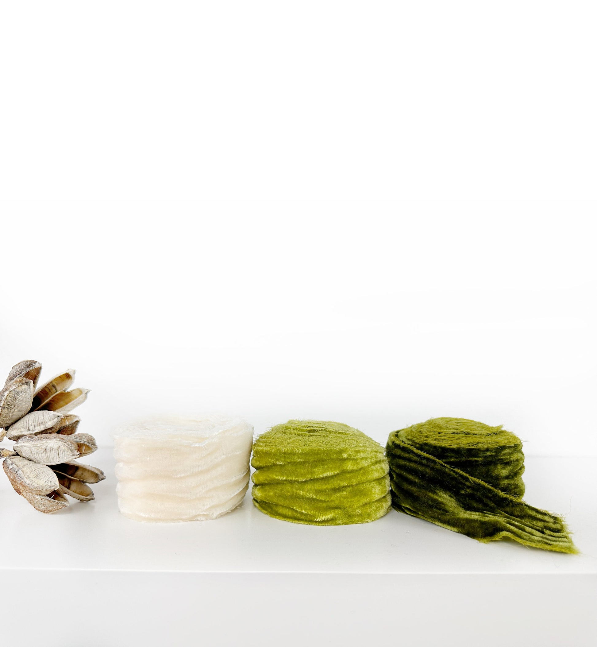 Frayed soft velvet ribbon, slightly frayed, can be made to fray more if need be.