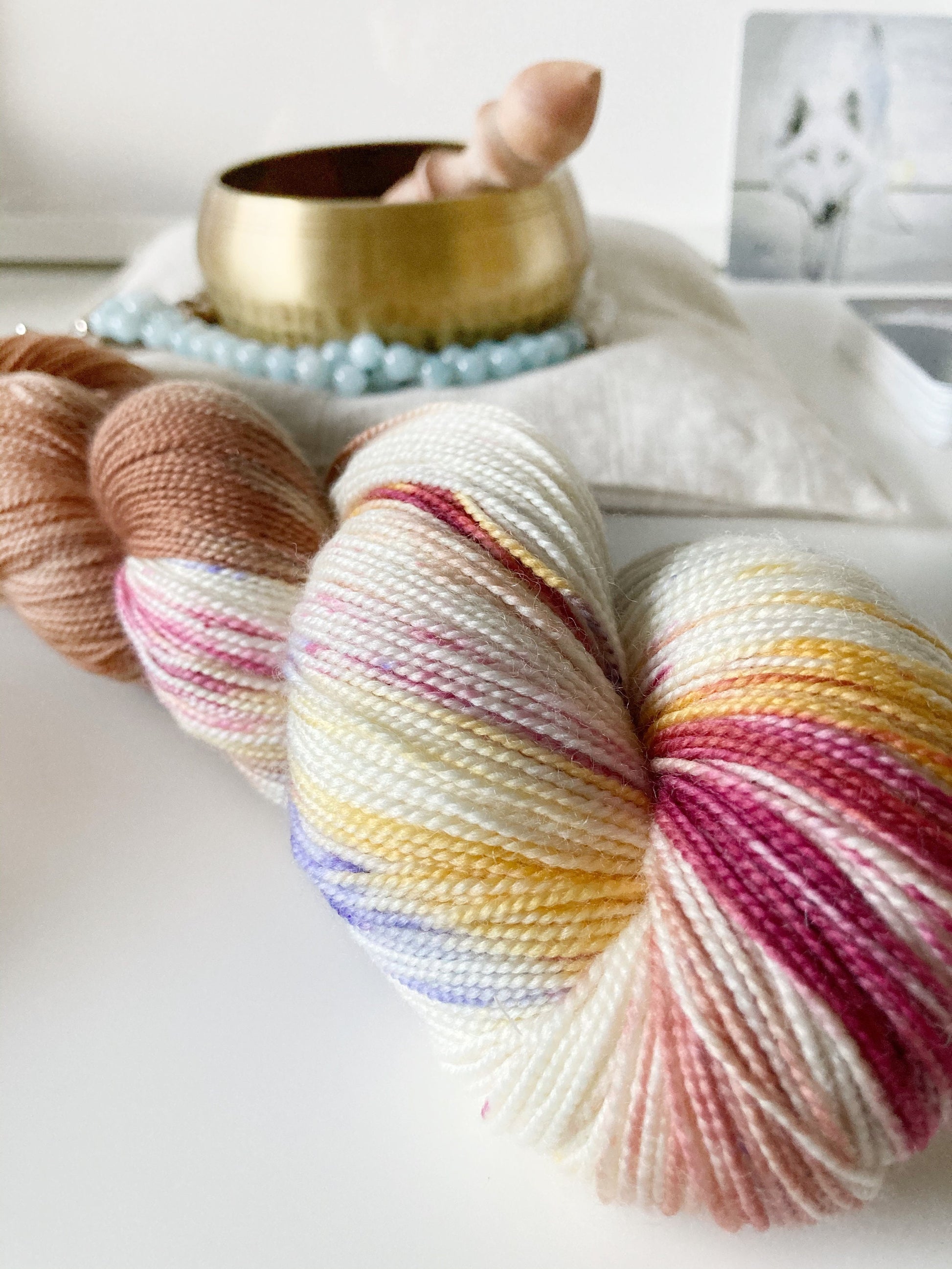 I hand-dye all my yarn in small batches, so variations from skein to skein are normal. While this skein has been rinsed thoroughly, I recommend you wash the finished project from this hand dyed yarn separately the first time. Even though the yarn is a Super Wash I feel it is a better choice to hand wash hand dyed yarns. All my yarn is dyed in a smoke free environment.