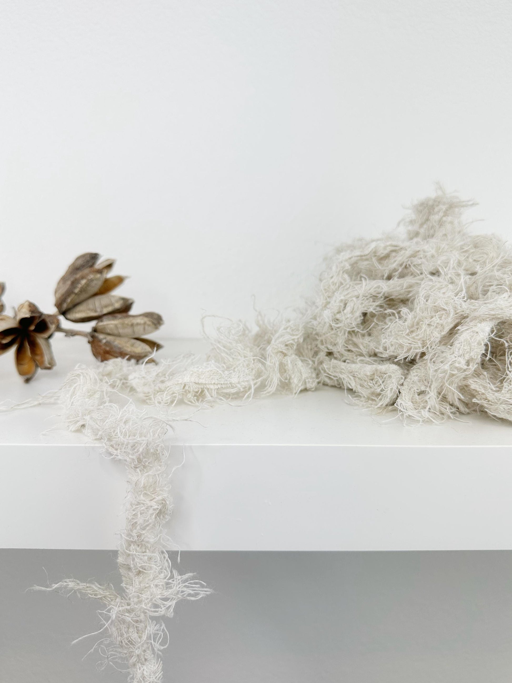 This is a unique frayed yarn that makes an amazing focal point in any weaving project. Please be aware that some of these come in pieces since this is a recycled product.