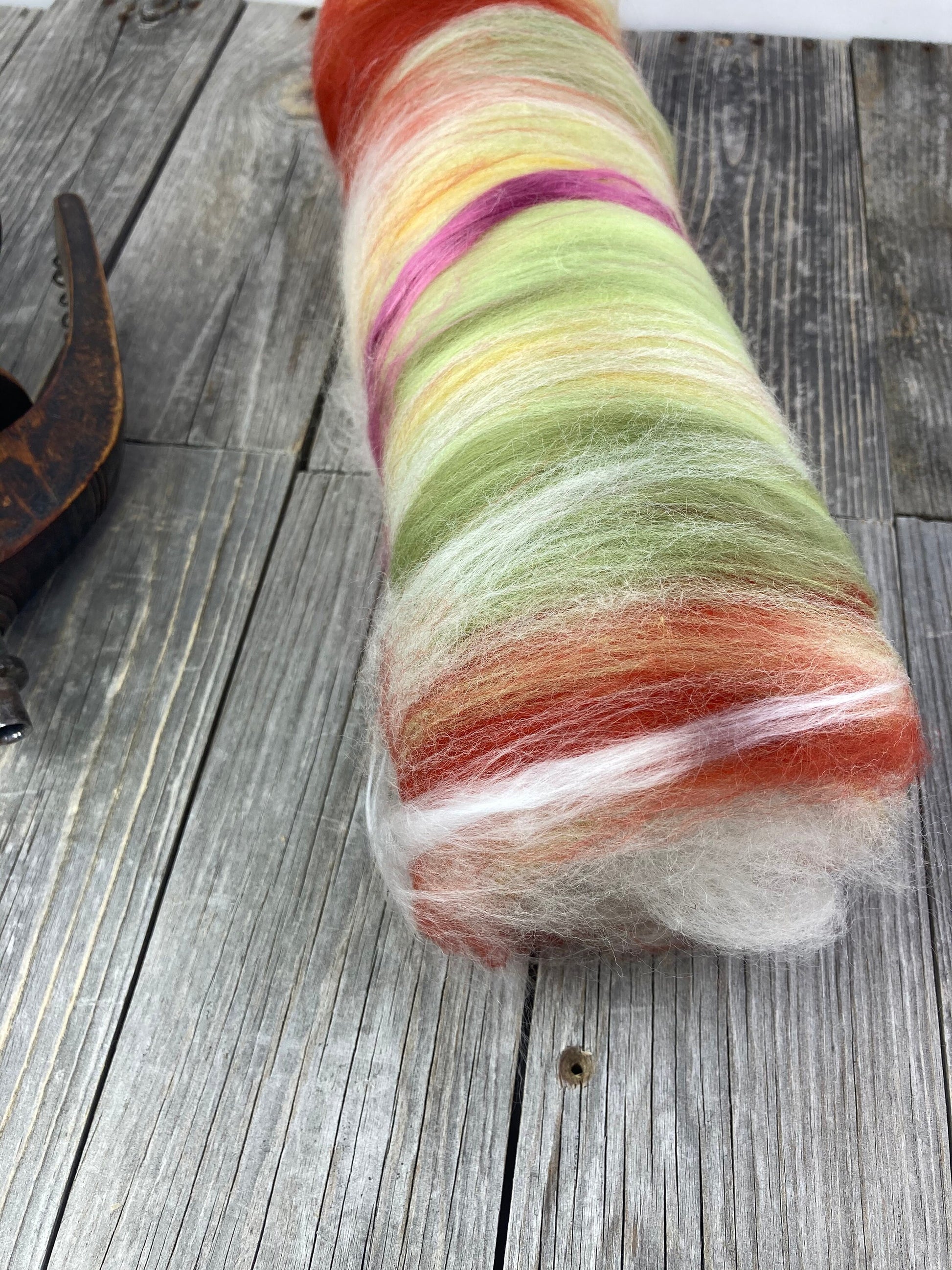 You are getting ~2.3 oz of fiber Fiber: Merino, BFL, Tencel, Silk