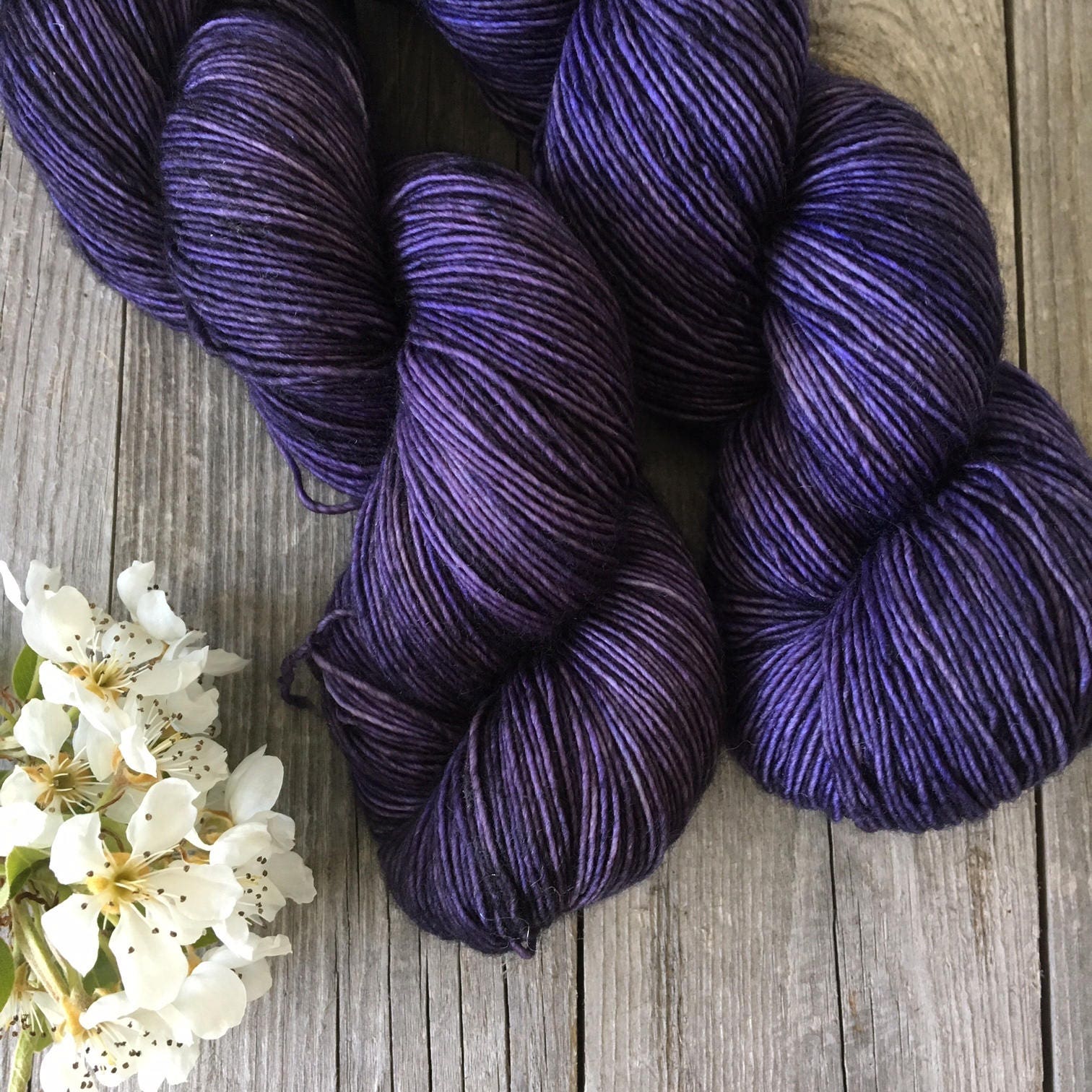 Super soft and washable single ply Merino yarn. The colorway contains shades of Purple. This is a semi solid color.