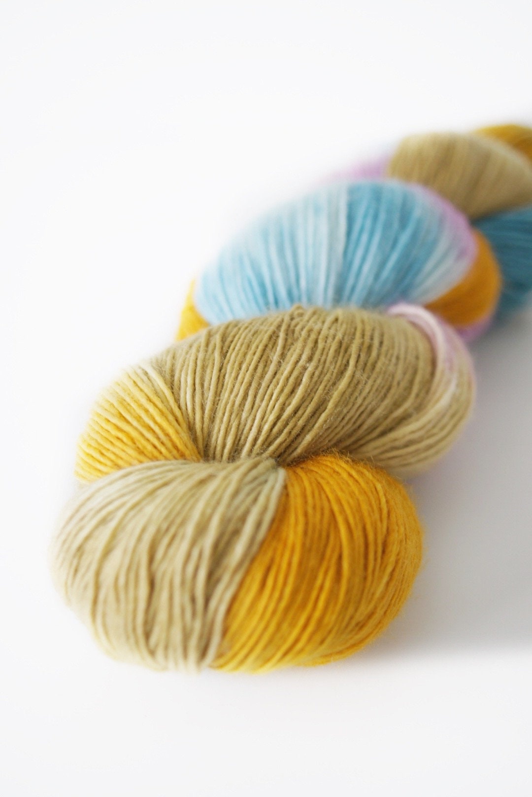 I hand-dye all my yarn in small batches, so variations from skein to skein are normal. While this skein has been rinsed thoroughly, I recommend you wash the finished project from this hand dyed yarn separately the first time. Even though the yarn is a Super Wash I feel it is a better choice to hand wash hand dyed yarns. All my yarn is dyed in a smoke free environment.
