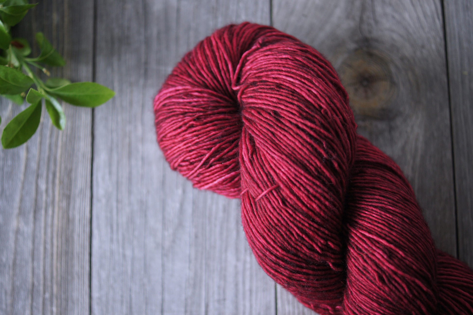 Super soft and washable single ply kettle dyed Merino yarn. This colorway contains shades of red. This is a semi solid color. This is a very rich beautiful red.