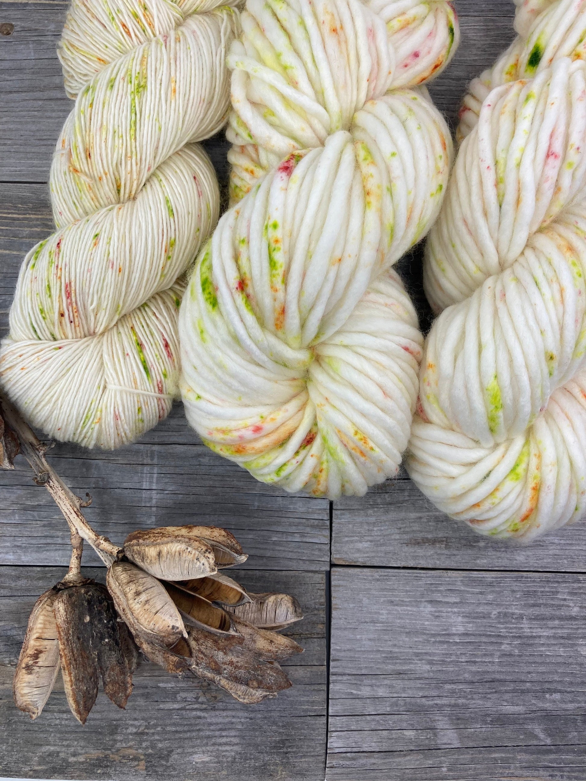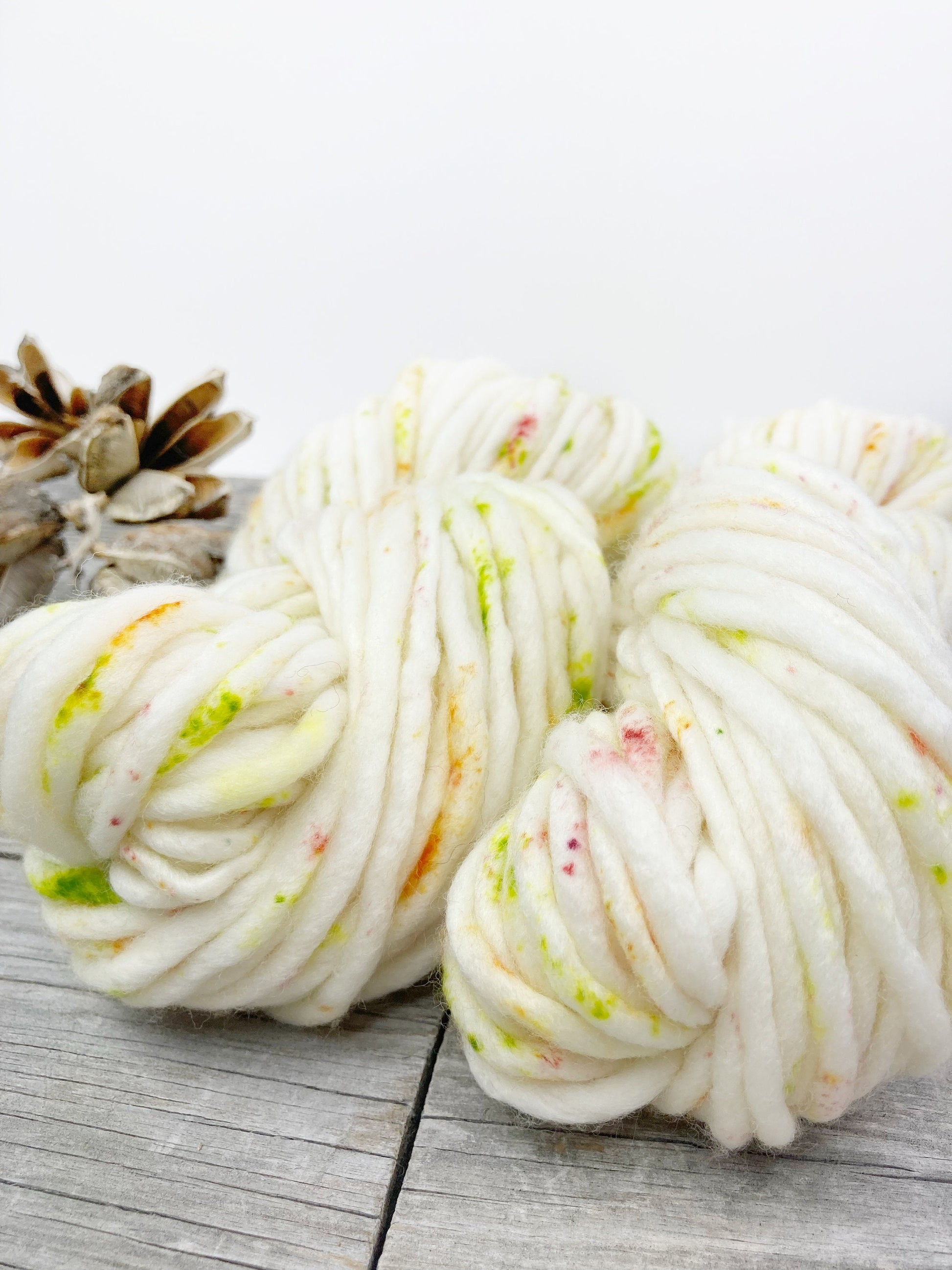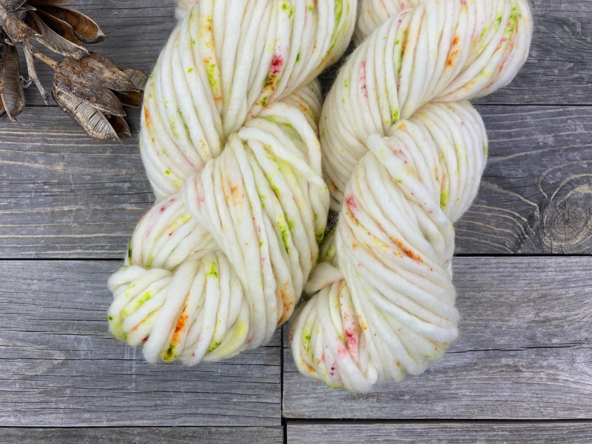 88% Merino | 12% Nylon • Super Bulky • Approx 76 yards (~69m) • Approx. 3.5oz (100 g) • 2-3 sts = 1" (US 11 up)