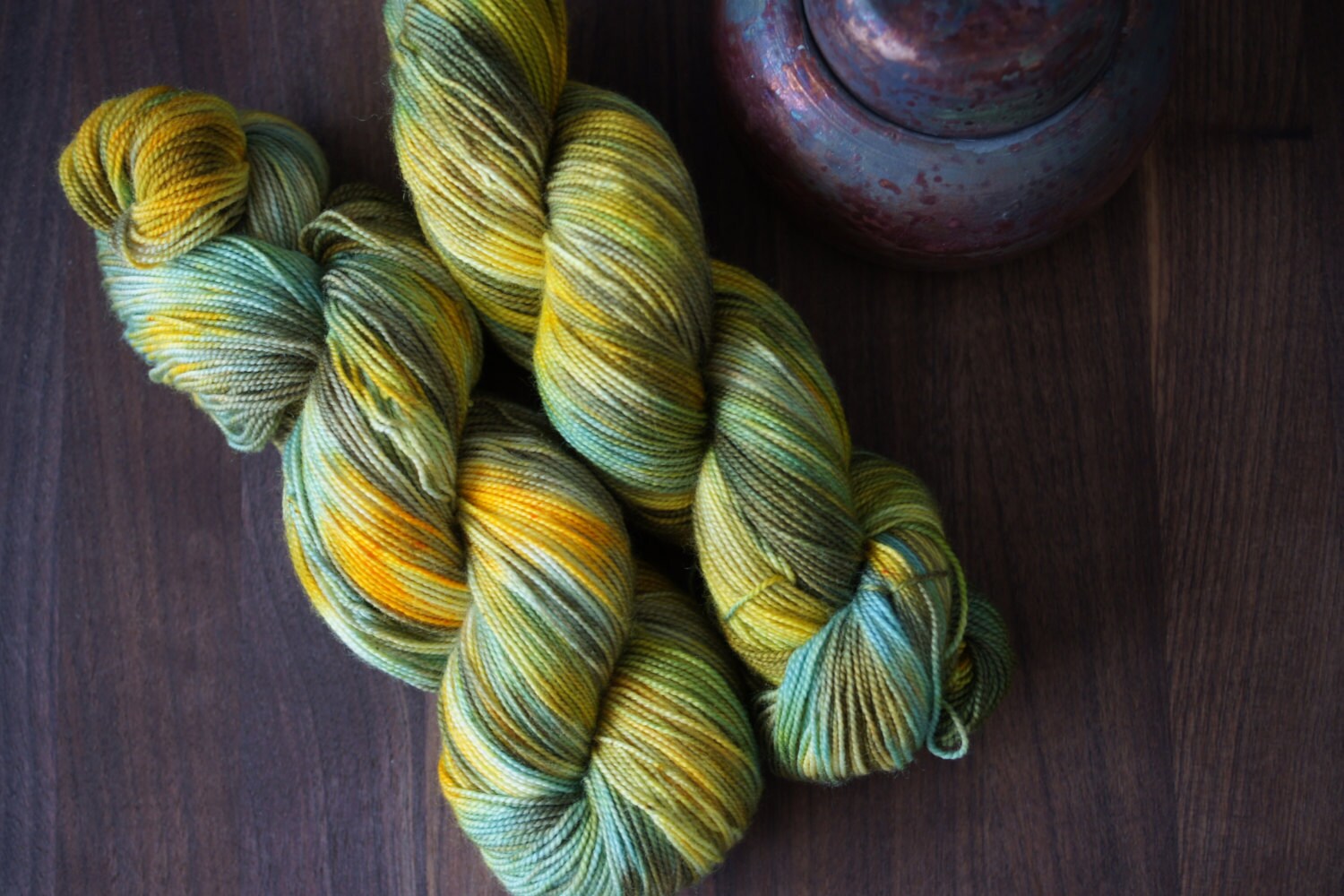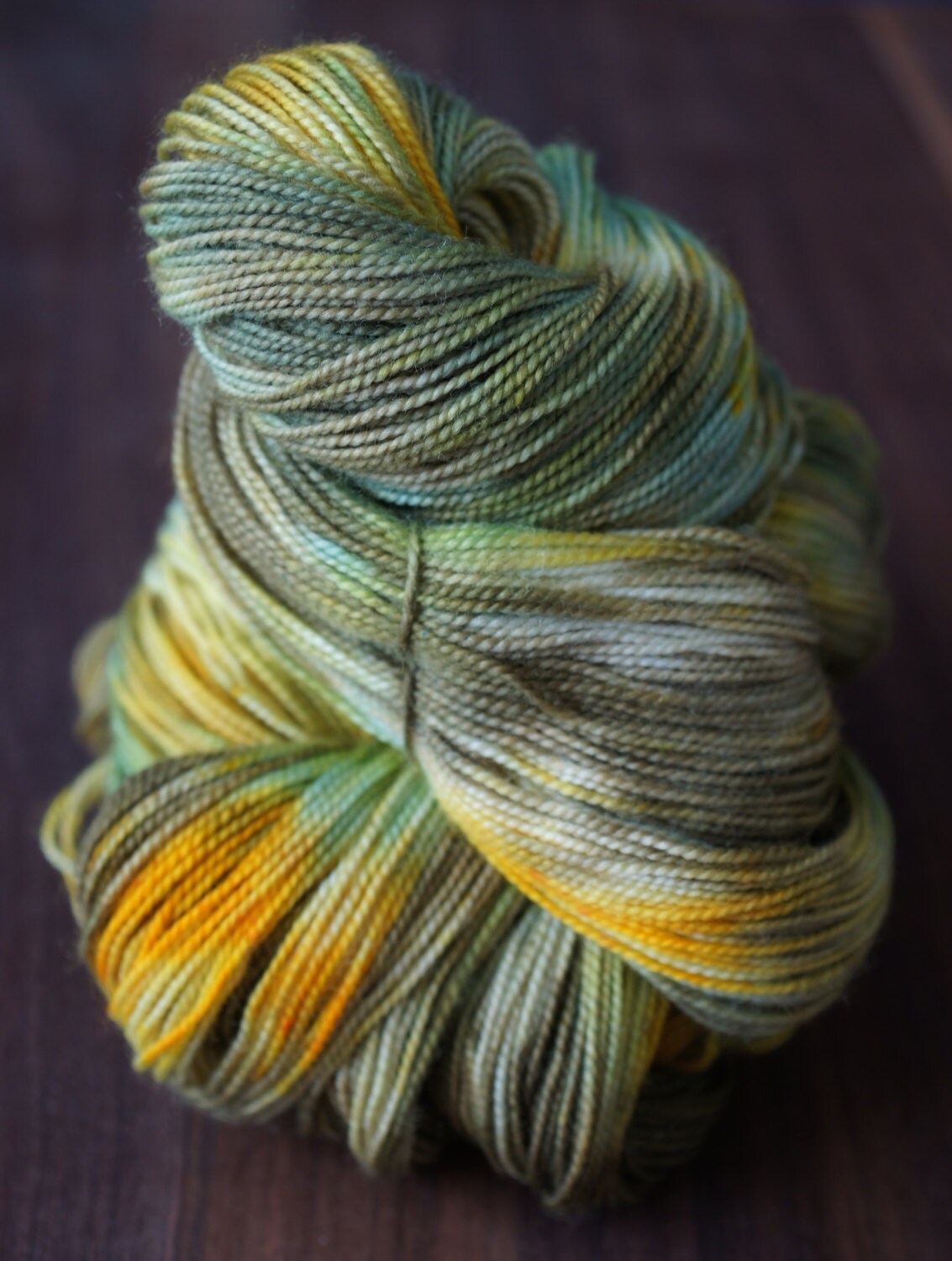 I hand-dye all my yarn in small batches, so variations from skein to skein are normal. While this skein has been rinsed thoroughly, I recommend you wash the finished project from this hand dyed yarn separately the first time. Even though the yarn is a Super Wash I feel it is a better choice to hand wash hand dyed yarns. All my yarn is dyed with Greener Shades and Gaywool Dyes, it is dyed in a smoke free environment and while we have a dog and a cat I make sure they will not get in contact with the fibers.