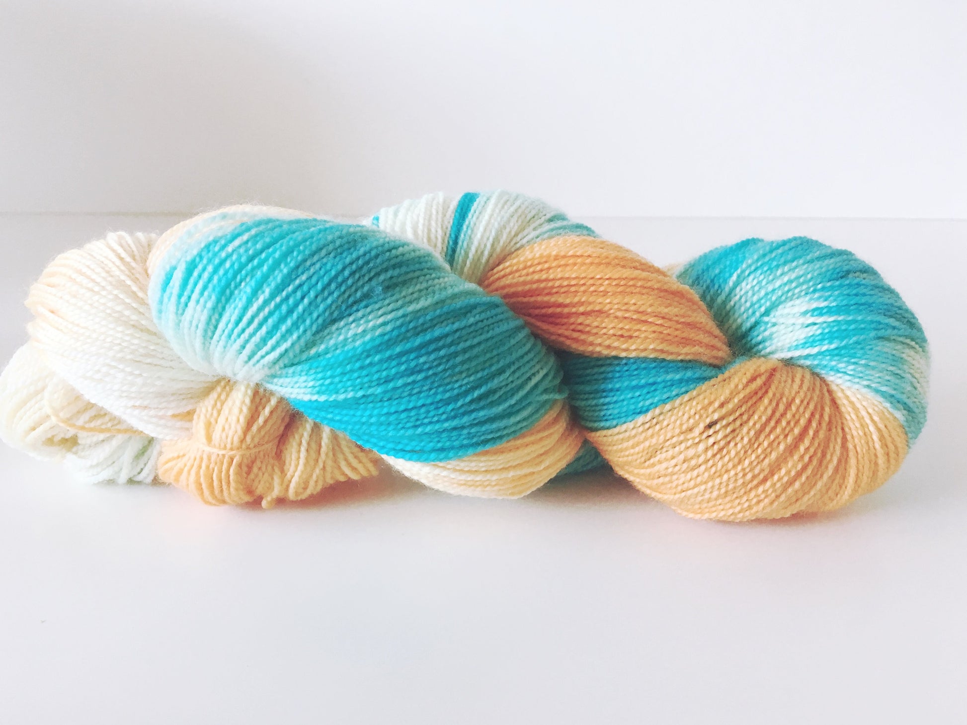 I hand-dye all my yarn in small batches, so variations from skein to skein are normal. While this skein has been rinsed thoroughly, I recommend you wash the finished project from this hand dyed yarn separately the first time. Even though the yarn is a Super Wash I feel it is a better choice to hand wash hand dyed yarns. All my yarn is dyed in a smoke free environment.