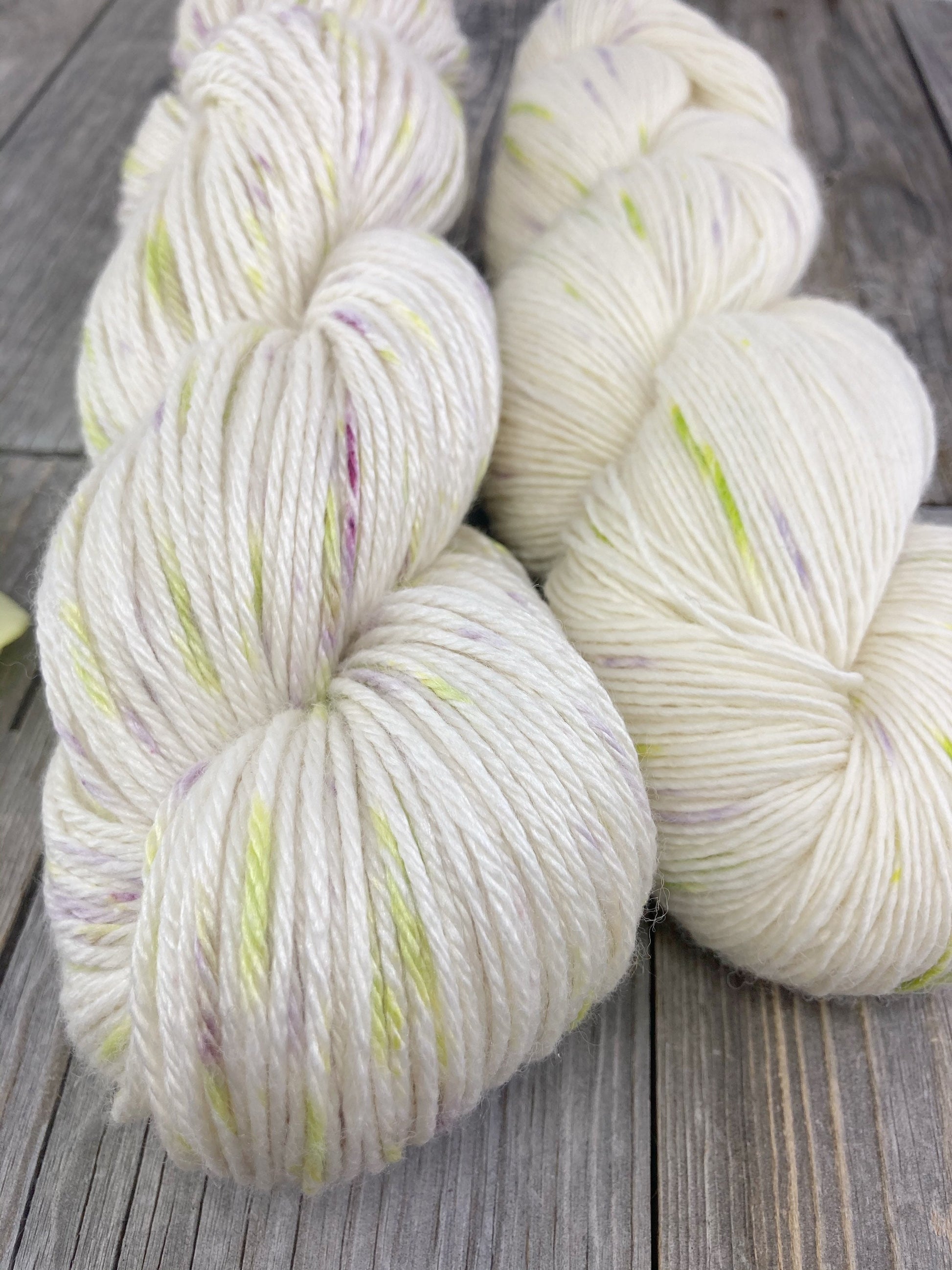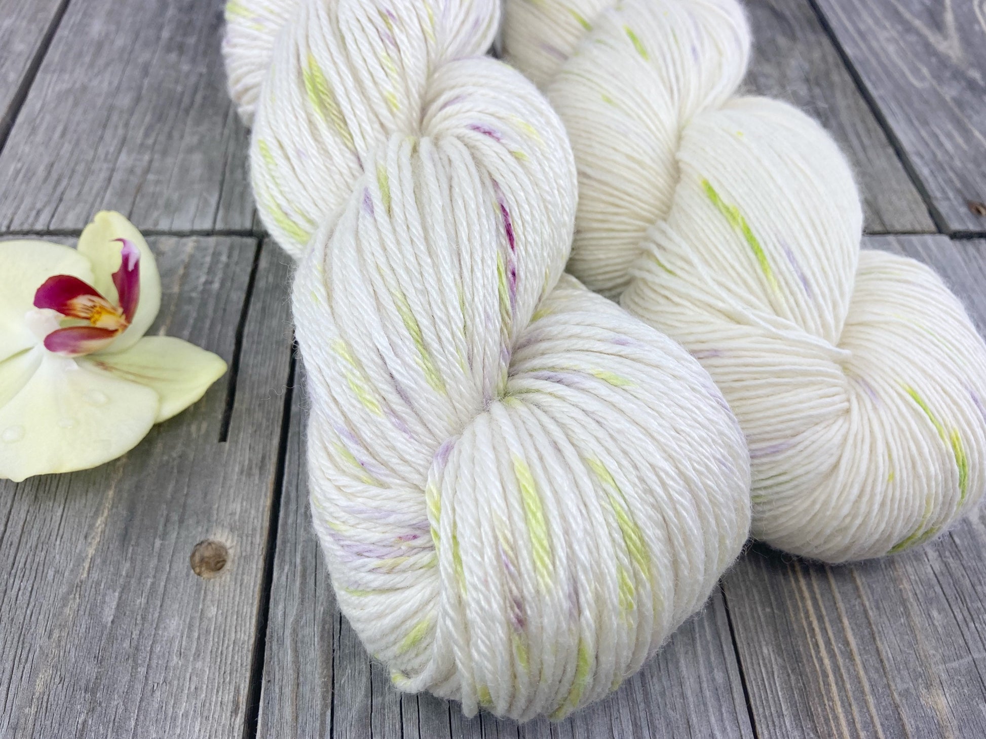 I hand-dye all my yarn in small batches, so variations from skein to skein are normal. While this skein has been rinsed thoroughly, I recommend you wash the finished project from this hand dyed yarn separately the first time. All my yarn is dyed in a smoke free environment.